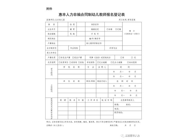 為滿足我市公辦幼兒園師資需求,我公司面向社會公開招聘一大批非事業(yè)編合同制幼兒教師,以勞務(wù)派遣的方式與用人單位進(jìn)行勞動(dòng)力資源開發(fā)合作?,F(xiàn)將有關(guān)事項(xiàng)公告如下:一、招聘人數(shù)及崗位我市招聘非事業(yè)編合同制幼兒教師50名,具體崗位在選崗前公示。二、招聘方式通過第三方勞務(wù)公...